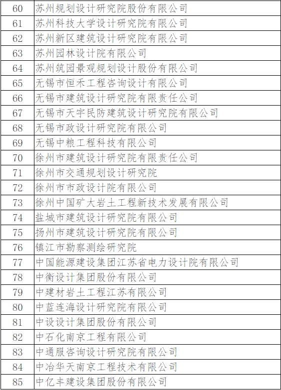 附:江蘇省勘察設(shè)計(jì)質(zhì)量管理先進(jìn)單位名單