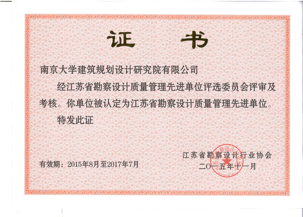 我院獲評江蘇省勘察設(shè)計“質(zhì)量管理先進(jìn)單位”