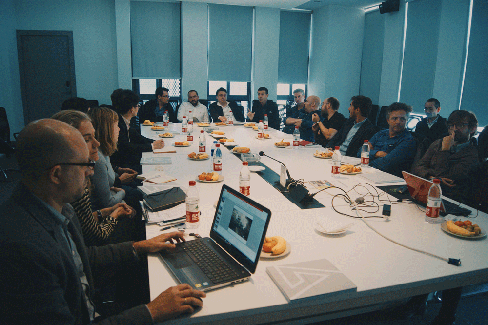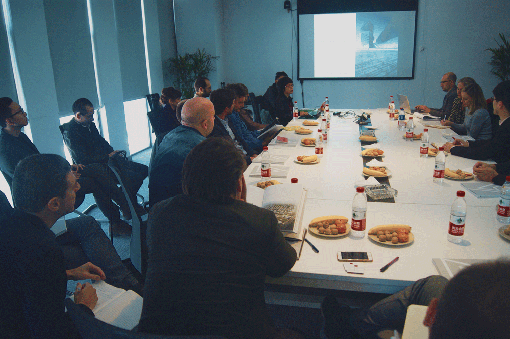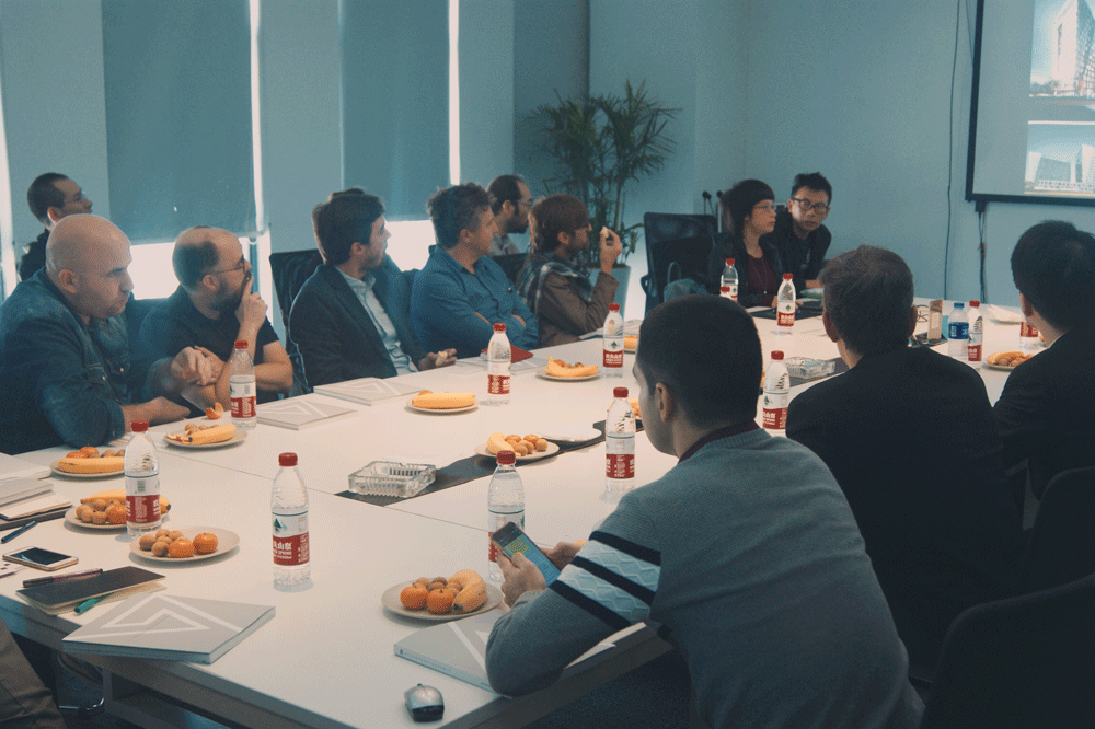 與去年的6人代表團有所不同,今年的訪問團分別來自西班牙10家設(shè)計事務(wù)所,總?cè)藬?shù)接近二十人,其中不乏曾在去年造訪我院的幾位老朋友。會議開始后,施華同事代表南大建規(guī)院公司,從企業(yè)概況、人才儲備、資質(zhì)信息、國際合作、精品項目等方面,將公司主要情況向代表團朋友做了簡明扼要的介紹。期間雙方還就我院數(shù)座代表性設(shè)計作品進(jìn)行了熱烈的討論。此后,西班牙代表團各位友人也分別對所在事務(wù)所的簡要情況做了詳細(xì)的陳述。雙方就實現(xiàn)優(yōu)勢互補、合作發(fā)展、學(xué)術(shù)交流等問題進(jìn)行了充足的討論并達(dá)成廣泛共識。