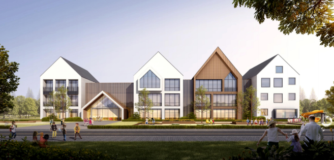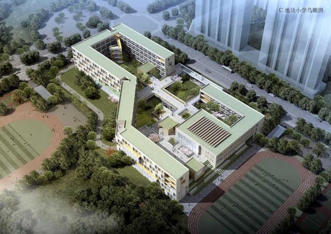 B、C 地塊(中小學(xué)):突破傳統(tǒng)校園的行列式布置,重視公共空間個(gè)性和品質(zhì)的營造。最大程度的利用好建筑用地邊界和東西向?qū)挾?,形成連續(xù)而續(xù)展的校園內(nèi)部空間;校園與城市接觸面友好而規(guī)整,校園間界面則相對(duì)活潑而自由。