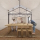 對呈現(xiàn)不同品質(zhì)等級的三棟房子采取三種不同的改造方法。1#房為磚石砌筑,墻體風(fēng)貌和質(zhì)量較好,但屋面已經(jīng)破敗,留存的鋼桁架卻也展示出當(dāng)?shù)氐慕ㄔ熘腔?。方法?,老屋架再利用,利用原有鋼桁架構(gòu)建新的鋼結(jié)構(gòu)獨(dú)立支撐體系,保證房子結(jié)構(gòu)強(qiáng)度;2,原有房子開窗較小,室內(nèi)幽暗,通過架高屋頂,形成高側(cè)窗,改善采光;3,新置內(nèi)膽,解決了保溫隔熱問題.2#房為石砌墻體加內(nèi)部木框架結(jié)構(gòu),是具有地方特點(diǎn)的建造方式,因?yàn)檎w質(zhì)量和風(fēng)貌較好,所以完整保留。 3#房為在原有老房子上采用空心砌塊臨時(shí)搭建的建筑,建筑結(jié)構(gòu)存在安全隱患。方法:1,將其主體拆除,保留老墻和原有基礎(chǔ),呈現(xiàn)原有歷史痕跡;2,置入傘狀結(jié)構(gòu),解放墻體,減少老基礎(chǔ)承力。