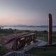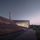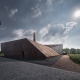 渡江勝利公園位于長江南京段水系下游,棲霞山對岸,劃子口河口處,龍袍新城濱江地帶。項目規(guī)劃用地約4.4公頃,包含公園、紀念館和標志塔。其中紀念館總建筑面積3690㎡,占地面積2610㎡,包含歷史展陳、專題展陳、紅色主題教育、互動參與、休閑、辦公等功能。建筑高度為14.8米,觀覽者于二層懸挑空間可以遠眺棲霞山和長江。展示構(gòu)筑物位于紀念館西側(cè),面朝長江四橋,高49.421米,為銘記渡江戰(zhàn)役勝利的歷史時刻。公園設(shè)計利用原有場地高差,通過地表高度的變化營造功能性的場所空間,地表的抬高、下沉、掀起、切割自然地描述出蘆葦蕩、音樂臺、雕塑、紀念館的空間起伏,使各功能體塊成為地形重塑的一部分。紀念館采用“大地耕作”1的設(shè)計策略,使地表裂開,建筑從地面緩緩升起,呈現(xiàn)北低南高、向前沖鋒的趨勢,整體猶如一條向棲霞山挺進的木船,直沖江面,象征著勝利之舟、人民之舟、偉大復(fù)興之舟。形體的設(shè)計回應(yīng)了習(xí)主席在合肥渡江戰(zhàn)役紀念館考察時強調(diào)的:“渡江戰(zhàn)役的勝利是靠老百姓用小船劃出來的。”