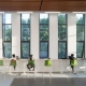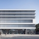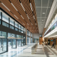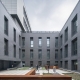 作為中等規(guī)模的高校圖書館,項目選址位于校園東西主軸線與南北新軸線的交匯點,西臨教學(xué)主樓,場地內(nèi)保留教師住宅位于東北角。布局尊重場地特征,形成非常規(guī)的校園核心,以覆土的報告廳呼應(yīng)校園軸線的端點,將高層主樓布置在最南側(cè),避免對保留住宅的日照影響,主樓和裙樓咬合布置,保留場地內(nèi)現(xiàn)存的水杉林,西北側(cè)空出大草坪為校園師生提供難得的戶外交往空間,并成為主要人流到達(dá)圖書館的寬廣前奏。外立面采用雙層表皮,在豎條窗外側(cè)設(shè)置豎向遮陽,設(shè)計過程利用軟件對采光效果進行模擬,遮陽板設(shè)計基于各個面朝向的差異采取不同的角度,豎向遮陽板采用鞋盒蓋型穿孔鋁板,不設(shè)置龍骨,利用穿孔鋁板自身的厚度和折邊滿足強度要求,利用角鋼在鋁板分縫出連接上部吊頂和下部窗臺的龍骨,遮陽板的間距與鋁板的模數(shù)成對應(yīng)關(guān)系。這座以學(xué)生為中心的新型圖書館無論在外部環(huán)境還是內(nèi)部空間,都盡可能提供開放、多元、互動的學(xué)習(xí)場所,啟用后立即得到廣大師生的認(rèn)同,成為南林校園的新網(wǎng)紅,它是南林師生共同擁有的信息公園、文化家園和精神樂園。